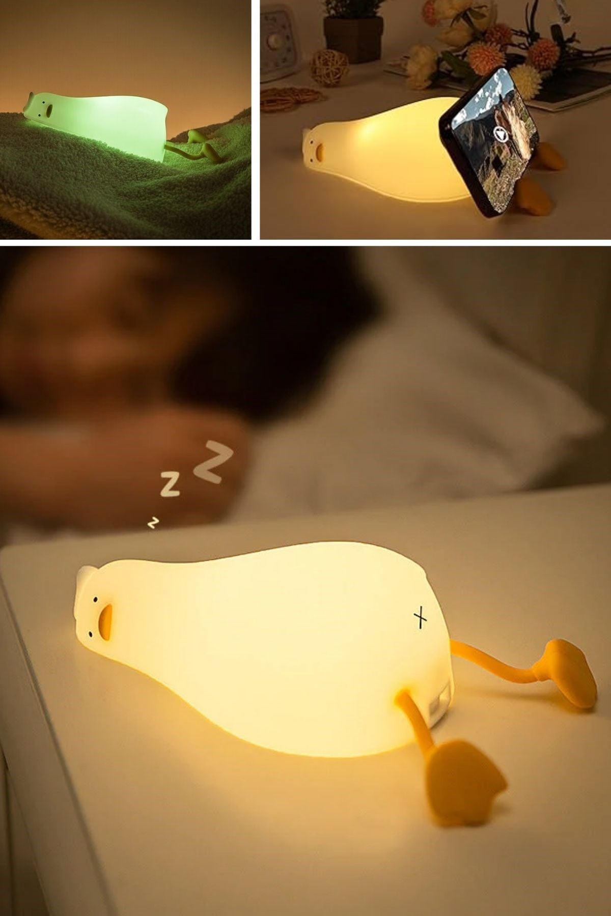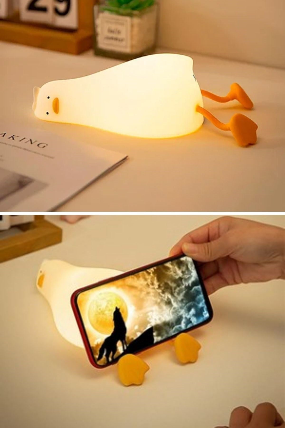 5 Farklı Renk Modlu Tembel Ördek Figürlü Pofuduk LED Gece Lambası, çocuklar için sevimli bir uyku arkadaşı, yetişkinler için ise dekoratif ve fonksiyonel bir ortam ışığıdır. Doğum günü, yeni doğan ve özel günler için hem şık hem de kullanışlı bir hediye alternatifi sunar. Sevimli tasarımı ve yumuşak ışığıyla yaşam alanlarınıza keyifli bir dokunuş katar.