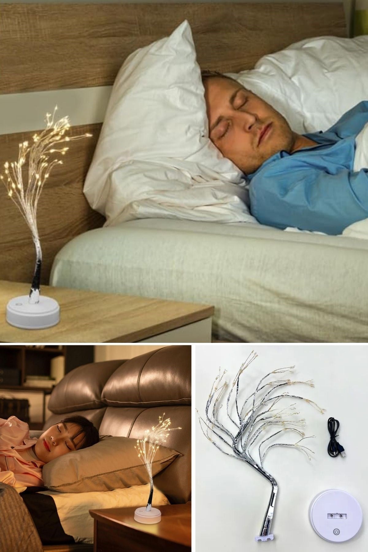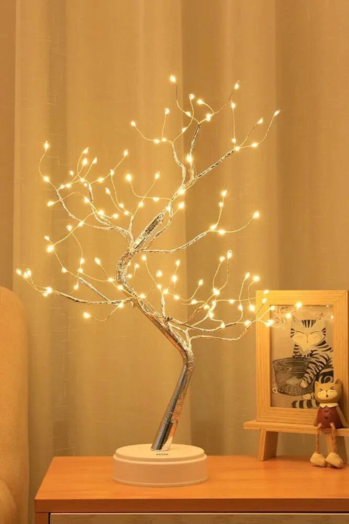 Masaüstü Peri Ağaç LED Lamba – Gün Işığı Rengi, 3 Kademeli Işık Ayarlı, Şarjlı Dekoratif Ortam Aydınlatması