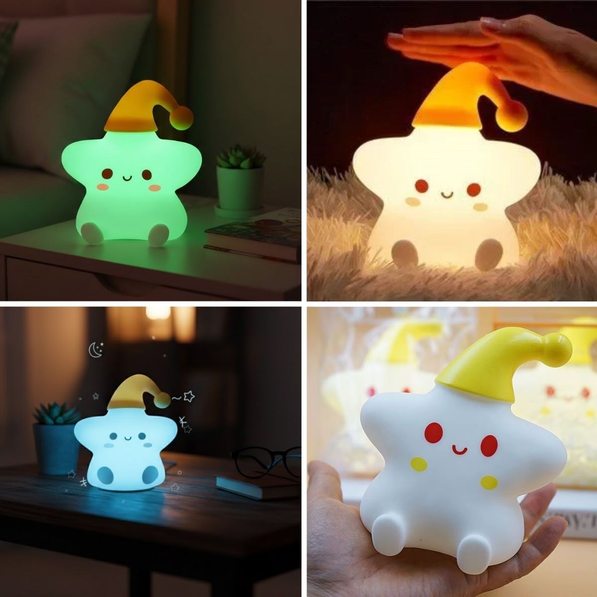 Yıldız Figürlü Pofuduk LED Gece Lambası – Yumuşak Dokulu Masaüstü Aydınlatma, Çocuk Odası ve Dekoratif Şarjlı Ortam Işığı